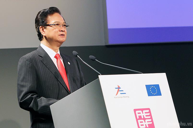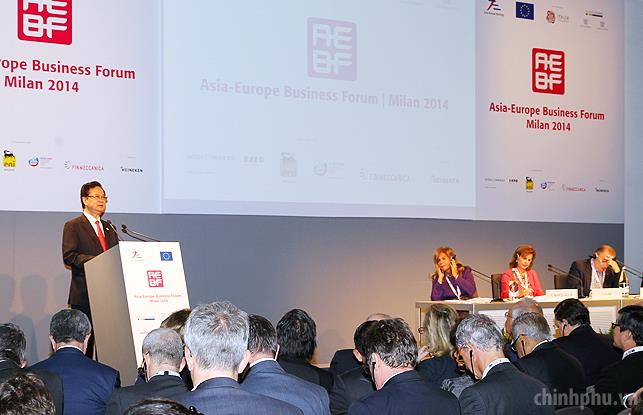 Thủ tướng Nguyễn Tấn Dũng phát biểu tại Diễn đàn Doanh nghiệp Á-Âu. Ảnh: VGP/Nhật Bắc