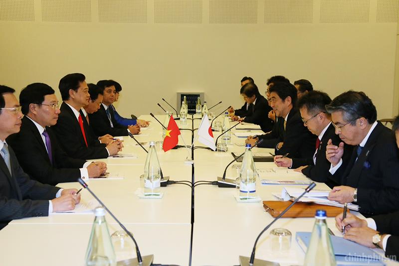 Thủ tướng Nguyễn Tấn Dũng và Thủ tướng Nhật Bản Shinzo Abe. Ảnh VGP/Nhật Bắc