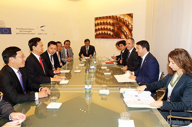 Thủ tướng Nguyễn Tấn Dũng gặp Thủ tướng Italy Matteo Renzi. Ảnh: VGP/Nhật Bắc