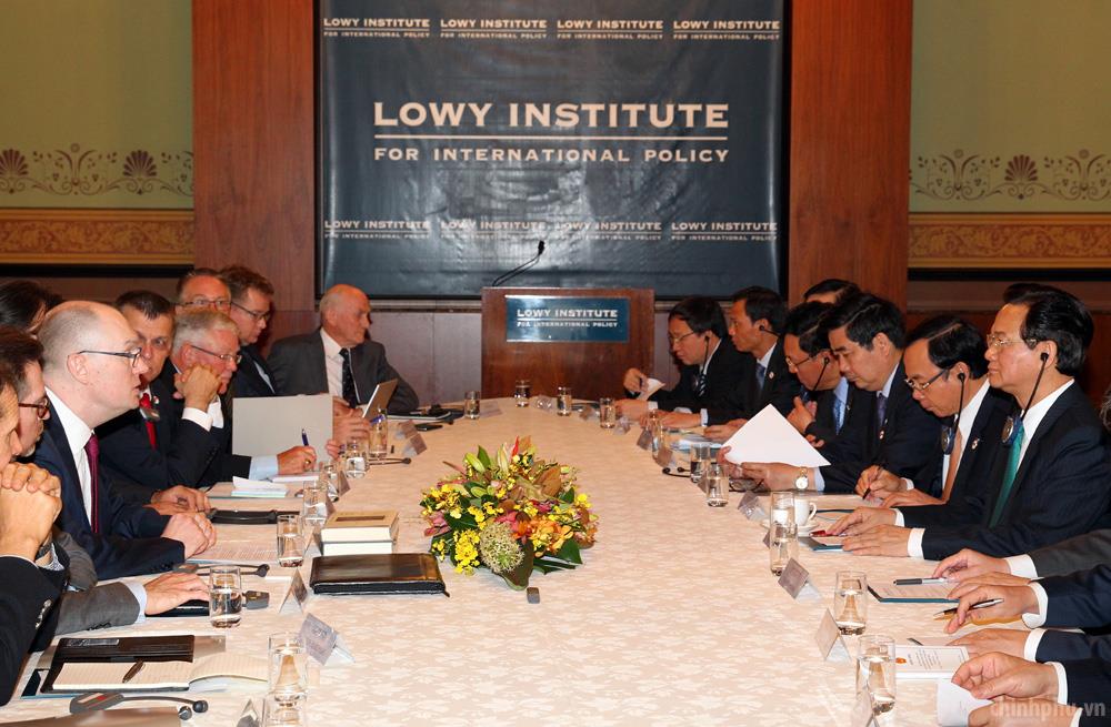 Thủ tướng Nguyễn Tấn Dũng thảo luận với các học giả, nhà nghiên cứu hàng đầu Australia tại Viện Lowy - Ảnh: VGP/Nhật Bắc
