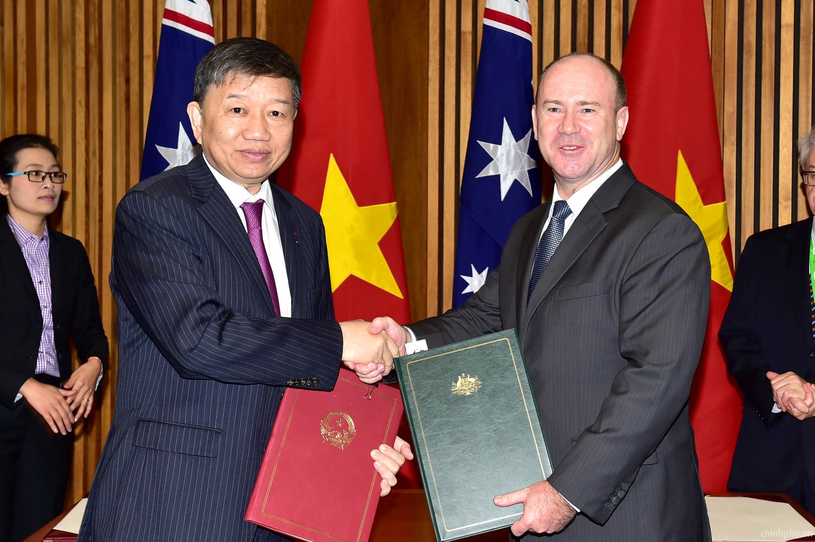 Lễ ký Thỏa thuận về triển khai chương trình hợp tác Châu Á-Australia về phòng chống buôn bán người. Ảnh: VGP/Nhật Bắc