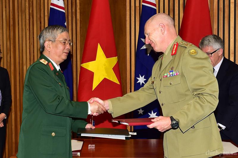 Lễ ký Bản Ghi nhớ về tham gia hoạt động gìn giữ hòa bình Liên Hợp Quốc của Việt Nam với đại diện Chính phủ Australia - Ảnh: VGP/Nhật Bắc