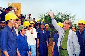| Đồng chí Võ Văn Kiệt gặp gỡ công nhân Đội xây lắp điện 7 thuộc Công ty Xây lắp điện I - 500 KV |