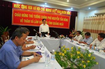 |  | | Thủ tướng Nguyễn Tấn Dũng thăm công trường Nhà máy lọc dầu Dung Quất - Ảnh: Cổng TTĐT Chính phủ | Lãnh đạo Tập đoàn Dầu khí Việt Nam (chủ đầu tư) cho biết: Đến nay các hợp đồng EPC 1+4 và 2+3 của nhà máy lọc dầu Dung Quất đã triển khai 37/44 tháng, đạt 95% tổng tiến độ. Trong đó, công tác thiết kế và mua sắm thiết bị đã cơ bản hoàn thành, công tác thi công xây dựng đạt 83,7%. Nhiều hạng mục xây dựng chính được hoàn thành như đóng điện các trạm biến áp SS1, SS2,SS4, SS5 và nhà điều khiển trung tâm, hệ thống phao rót dầu không biến, hệ thống điều khiển tự động...Các gói thầu EPC số 5A, 5B, 7 cũng đang tập trung hoàn thiện để cuối tháng 9/2008 bàn giao cho chủ đầu tư. Riêng dự án Polypropylen mới đạt 13,07% tiến độ và đang được tăng cường máy móc thiết bị san lấp mặt bằng nhằm đảm bảo được tiến độ đã đề ra. Chủ đầu tư, tổng thầu Technip và các nhà thầu phụ đang tích cực tìm các giải pháp thúc đẩy tiến độ thi công, bảo đảm nhà máy bắt đầu có sản phẩm vào tháng 2/2009. Về công tác chuẩn bị chạy thử và vận hành, chủ đầu tư đã tuyển dụng được 1.046/1.071 nhân sự vận hành theo sơ đồ tổ chức nhà máy; việc chuẩn bị cung cấp dầu thô, nhiêu liệu, hóa phẩm xúc tác, tiêu thụ sản phẩm phục vụ giai đoạn chạy thử cũng đang được chủ đầu tư triển khai theo đúng tiến độ. |  |  | | Thủ tướng Nguyễn Tấn Dũng làm việc với lãnh đạo Tập đoàn Dầu khí Việt Nam tại Cảng xuất sản phẩm hóa dầu Dung Quất - Ảnh: Cổng TTĐT Chính phủ | Nhà máy Lọc dầu Dung Quất đã hoàn thành nhiều hạng mục để đi vào vận hành từ tháng 2/2009- Ảnh: Cổng TTĐT Chính phủ | Vượt qua khó khăn, thực hiện đúng hợp đồng cam kết Phát biểu tại buổi làm việc, Thủ tướng Nguyễn Tấn Dũng đánh giá cao nỗ lực của chủ đầu tư, các nhà thầu, tư vấn giám sát và địa phương đã kiểm soát và đảm bảo tiến độ đã đề ra. Thủ tướng biểu dương cán bộ, kỹ sư, công nhân trên công trường đã khắc phục khó khăn làm việc không kể ngày đêm, chủ động được tiến độ để tháng 2/2009 đưa nhà máy vào vận hành. Thủ tướng nhấn mạnh, chỉ còn 221 ngày nữa là đến thời điểm nhà máy chính thức đi vào vận hành trong khi mùa mưa bão sắp tới, nên đòi hỏi phải có sự chỉ đạo quyết liệt, trước hết là chủ đầu tư cần kiểm soát chặt tiến độ. Chủ đầu tư, tư vấn và các nhà thầu phải duy trì giao ban hàng ngày nhằm tháo gỡ ngay khó khăn, vướng mắc phát sinh sớm đưa nhà máy vào vận hành an toàn, hiệu quả, đúng tiến độ và đảm bảo chất lượng tuyệt đối. Thủ tướng yêu cầu chủ thầu EPC là nhà thầu Technip phải thực hiện đúng theo hợp đồng đã cam kết và các nhà thầu phụ cùng hỗ trợ tổng thầu để đảm bảo tiến độ. Chính phủ sẽ xem xét tích cực hỗ trợ các nhà thầu do giá cả trong nước và thế giới tăng cao. Thủ tướng đề nghị địa phương và các đơn vị thi công đảm bảo an toàn lao động, an ninh trật tự và đào tạo nguồn nhân lực, chuẩn bị vận hành nhà máy an toàn. |  | | Thủ tướng Nguyễn Tấn Dũng và Đoàn Công tác Chính phủ làm việc với lãnh đạo chủ chốt tỉnh Quảng Ngãi - Ảnh: Cổng TTĐT Chính phủ | Quảng Ngãi phát huy lợi thế để bứt phá thoát nghèo Tối 19/7, Thủ tướng Nguyễn Tấn Dũng và lãnh đạo các Bộ, ngành Trung ương đã làm việc với lãnh đạo chủ chốt tỉnh Quảng Ngãi về thực hiện kế hoạch kinh tế-xã hội 6 tháng đầu năm và các giải pháp cho 6 tháng cuối năm 2008. Thủ tướng chia sẻ những khó khăn với Quảng Ngãi, một trong những tỉnh nghèo nhất nam Trung bộ đã có nhiều cố gắng bình ổn giá cả, hạn chế chi tiêu, cắt giảm đầu tư công, kịp thời hỗ trợ, đảm bảo an sinh xã hội, thực hiện trợ cấp bằng tiền tương đương 5 lít dầu hỏa thắp sáng cho các hộ là đồng bào dân tộc thiểu số, hộ chính sách, nghèo ở những nơi chưa có điện, miễn thu thủy lợi phí cho nông dân. Khu kinh tế Dung Quất có nhiều khởi sắc, thu hút được 165 dự án đầu tư với tổng vốn đăng ký khoảng 11 tỷ USD; duy trì tốc độ tăng trưởng khá trên hầu hết các lĩnh vực. Thủ tướng đề nghị Quảng Ngãi tiếp tục thực hiện tốt các giải pháp Chính phủ đề ra nhằm góp phần kiềm chế lạm phát, tăng trưởng bền vững, bảo đảm an sinh xã hội, nhất là đối với đồng bào dân tộc thiểu số, nghèo, vùng sâu, vùng xa, gia đình chính sách. Thủ tướng nhấn mạnh, Quảng Ngãi cần phát huy mạnh mẽ các lợi thế như cảng nước sâu, sân bay Chu Lai, nguồn nhân lực có chất lượng cao…tạo ra những bứt phá và thoát nghèo. Về việc mở rộng Khu Kinh tế Dung Quất, Thủ tướng yêu cầu tỉnh phối hợp với các bộ, ngành chức năng lập luận chứng khoa học trình Thủ tướng Chính phủ xem xét quyết định. Thủ tướng tin tưởng: Quảng Ngãi trung dũng, kiên cường, giàu truyền thống cách mạnh, mai này trở thành tỉnh giàu mạnh. L