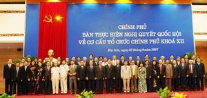 Đồng thời trong tháng 8/2007, Bộ Nội vụ trình Chính phủ Nghị định quy định chức năng, nhiệm vụ, quyền hạn và cơ cấu tổ chức của Bộ, cơ quan ngang Bộ; trong tháng 9-10/2007, Bộ trưởng, Thủ trưởng cơ quan ngang Bộ, cơ quan thuộc Chính phủ có trách nhiệm xây dựng Nghị định quy định cụ thể chức năng nhiệm vụ, quyền hạn và cơ cấu tổ chức của Bộ, ngành mình phụ trách để trình Chính phủ ban hành đúng thời hạn. Trong tháng 10-11/2007, đối với các Bộ có Tổng cục và tương đương thành lập mới hoặc cơ quan thuộc Chính phủ chuyển vào Bộ thì Bộ trưởng có trách nhiệm xây dựng và trình Thủ tướng Chính phủ quyết định quy định chức năng, nhiệm vụ, quyền hạn và cơ cấu tổ chức của Tổng cục và tương đương.
