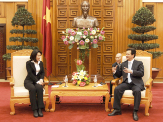 (Chinhphu.vn) – Tiếp Bộ trưởng Bộ Thương mại Thái Lan Porntiva Nakasai đang ở thăm và làm việc tại nước ta chiều 15/5 tại Trụ sở Chính phủ, Thủ tướng Chính phủ Nguyễn Tấn Dũng đề nghị lãnh đạo Bộ Công Thương Việt Nam và Bộ Thương mại Thái Lan cần tích cực triển khai các lĩnh vực, chương trình hợp tác đã thỏa thuận.