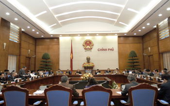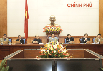 | | Thủ tướng Chính phủ Nguyễn Tấn Dũng: Chủ động, tập trung mọi nỗ lực ngăn chặn sự suy giảm của nền kinh tế - Ảnh: Chinhphu.vn | Phiên họp Chính phủ thường kỳ tháng 11 diễn ra trong 2 ngày (từ 1-2/12) dưới sự chủ trì của Thủ tướng và các Phó Thủ tướng Chính Phủ. Chính phủ đã nghe báo cáo, thảo luận về tình hình kinh tế-xã hội tháng 11 và 11 tháng đầu năm 2008, đề ra các giải pháp kịp thời ngăn chặn sự đình trệ của sản xuất kinh doanh, đảm bảo duy trì tăng trưởng kinh tế; thảo luận, cho ý kiến về một số vấn đề cụ thể: Cơ chế chỉ định thầu đối với các dự án xây dựng thuộc Đề án kiên cố hóa trường học, lớp học và nhà công vụ cho giáo viên giai đoạn 2008-2012; Tờ trình dự án Luật sửa đổi, bổ sung một số điều của Luật Điện ảnh; Tờ trình về phê chuẩn Công ước của Liên Hợp Quốc về phòng, chống tham nhũng; Báo cáo về tình hình thực hiện công tác cải cách hành chính tháng 11 năm 2008. Kế hoạch ứng phó suy thoái kinh tế toàn cầu bước đầu phát huy tác dụng Thảo luận về tình hình kinh tế-xã hội tháng 11 và 11 tháng đầu năm 2008, Thủ tướng Nguyễn Tấn Dũng và các thành viên Chính phủ nhận định: Khủng hoảng tài chính và suy thoái kinh tế toàn cầu, thiên tai lũ lụt ở trong nước đã có tác động nhất định tới nền kinh tế của nước ta. Giá trị sản xuất công nghiệp chỉ tăng 15% so với cùng kỳ năm 2007 (tháng 11/2007 so với cùng kỳ năm trước tăng 17,4%), tháng 11 là tháng thứ 5 liên tiếp (kể từ tháng 7) tốc độ tăng giá trị sản xuất công nghiệp bị giảm sút. Giá trị gia tăng ngành xây dựng 9 tháng đầu năm 2009 giảm 0,33% so với cùng kỳ năm trước. Kim ngạch xuất khẩu, đầu tư, thu ngân sách, thị trường chứng khoán, du lịch, vận tải, dịch vụ và sức mua đều giảm sút so với những tháng gần đây. Thiên tai lũ lụt trong nước làm mất trắng hơn 200 nghìn ha vụ Đông, gây thiệt hại lớn ở miền Bắc và miền Trung. | | Thủ tướng Chính phủ Nguyễn Tấn Dũng và các Phó Thủ tướng Chính phủ chủ trì Phiên họp thường kỳ Chính phủ tháng 11 - Ảnh: Chinhphu.vn | Trước nhiều khó khăn thách thức, các thành viên Chính phủ có chung nhận định: Dưới sự lãnh đạo của Đảng, điều hành quyết liệt của Chính phủ, Thủ tướng Chính phủ, sự cố gắng của của các cấp, các ngành, các tầng lớp nhân dân và doanh nghiệp, nền kinh tế vẫn duy trì được tốc độ tăng trưởng và phát triển ổn định; lạm phát được kiềm chế; đầu tư trực tiếp của nước ngoài tiếp tục tăng (11 tháng đầu năm 2008 tăng 44,2% so với cùng kỳ năm 2007), chỉ số giá tiêu dùng tháng 11 giảm 0,76% so với tháng 10, lãi suất tín dụng giảm nhanh tạo điều kiện thuận lợi cho các doanh nghiệp tiếp cận các nguồn vốn vay; chính sách an sinh xã hội được bảo đảm, riêng trợ cấp xã hội trong 11 tháng qua là gần 20 nghìn tỉ đồng (năm 2007 gần 5 ngàn tỉ đồng), ước tăng trưởng GDP năm 2008 đạt mức 6,7%. Thủ tướng Nguyễn Tấn Dũng cho rằng, những khó khăn trên bắt nguồn từ các nguyên nhân cộng hưởng bởi sự suy thoái của nền kinh tế thế giới cùng với những khó khăn trong nước, nhưng cũng đã được dự báo và nằm trong kế hoạch ứng phó từ các tháng trước. | | Phiên họp thường kỳ Chính phủ tháng 11 - Ảnh: Chinhphu.vn | 5 giải pháp trọng tâm ngăn chặn sự suy giảm kinh tế Sau khi nghe báo cáo, thảo luận của các thành viên Chính phủ, Thủ tướng Nguyễn Tấn Dũng kết luận, trong tháng 12 và thời gian tới, các cấp, các ngành cần tập trung mọi nỗ lực, chủ động thực hiện đồng bộ các giải pháp để đạt mục tiêu ngăn chặn sự suy giảm kinh tế, duy trì tốc độ tăng trưởng, bảo đảm an sinh xã hội. Trong đó, Thủ tướng lưu ý 5 nhóm giải pháp trọng tâm: Thứ nhất: Thúc đẩy sản xuất kinh doanh và đẩy mạnh xuất khẩu, trong đó, có chính sách tháo gỡ khó khăn cho doanh nghiệp sản xuất kinh doanh, cho những người trực tiếp sản xuất, nhất là đối tượng nông dân, người nghèo, về chính sách thuế, vay vốn ngân hàng, hoãn nợ, giãn nợ ngân hàng, hỗ trợ về cây, con giống… Tăng cường các hoạt động xúc tiến thương mại, mở rộng thị trường xuất khẩu, đẩy mạnh xuất khẩu các mặt hàng có thế mạnh, có khả năng tăng cao, kim ngạch lớn và nhiều cơ hội tiêu thụ ở cả trong và ngoài nước. “Làm tốt công tác phát triển sản xuất, kinh doanh cũng chính là làm tốt công tác an sinh xã hội”, Thủ tướng Nguyễn Tấn Dũng nhấn mạnh. Thứ hai: Đẩy mạnh, kích cầu đầu tư và tiêu dùng, kích cầu đầu tư bằng nguồn vốn ngân sách nhà nước về xây dựng cơ bản tập trung hàng năm, nguồn trái phiếu Chính phủ và nguồn vốn ODA. Trong kích cầu đầu tư, cần khuyến khích các thành phần kinh tế, doanh nghiệp tham gia, tạo điều kiện thuận lợi cho các doanh nghiệp ngoài quốc doanh đầu tư vào các lĩnh vực như xây dựng cơ sở hạ tầng, giao thông vận tải, điện, xi măng… Đối với tiêu dùng