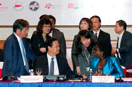 Thủ tướng Nguyễn Tấn Dũng trao đổi với bà Victoria Kwakwa, Giám đốc WB tại Việt Nam. Ảnh: VGP/Nhật Bắc