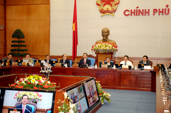 (Chinhphu.vn) – Tiếp tục phiên họp Chính phủ thường kỳ tháng 3/2009, ngày 1/4, dưới sự chủ trì của Thủ tướng Nguyễn Tấn Dũng, các thành viên Chính phủ đã xem xét cho ý kiến dự án Luật Viễn thông và một số dự án Luật bổ sung, sửa đổi trước khi trình Ủy ban Thường vụ Quốc hội, Quốc hội xem xét quyết định.