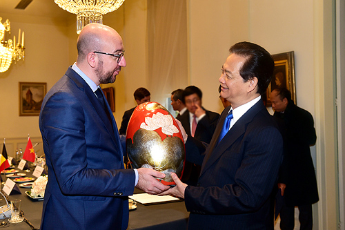 Thủ tướng Nguyễn Tấn Dũng và Thủ tướng Vương quốc Bỉ Charles Michel.
