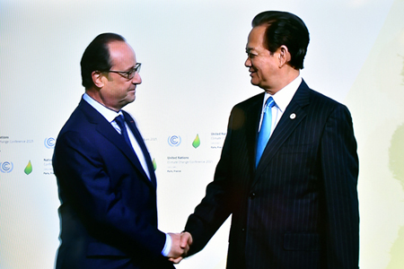 Trong khuôn khổ chuyến tham dự Hội nghị lần thứ 21 các Bên tham gia Công ước Liên Hợp Quốc về Biến đổi khí hậu (COP21) tại Paris, Thủ tướng Nguyễn Tấn Dũng có cuộc hội đàm với Thủ tướng Pháp Manuel Valls.