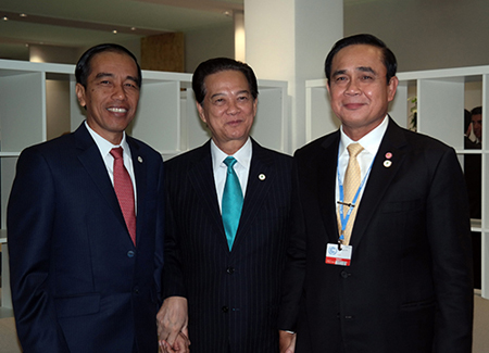 Thủ tướng Nguyễn Tấn Dũng cùng Tổng thống Indonesia Joko Widodo và Thủ tướng Thái Lan Prayut Chan-o-cha.