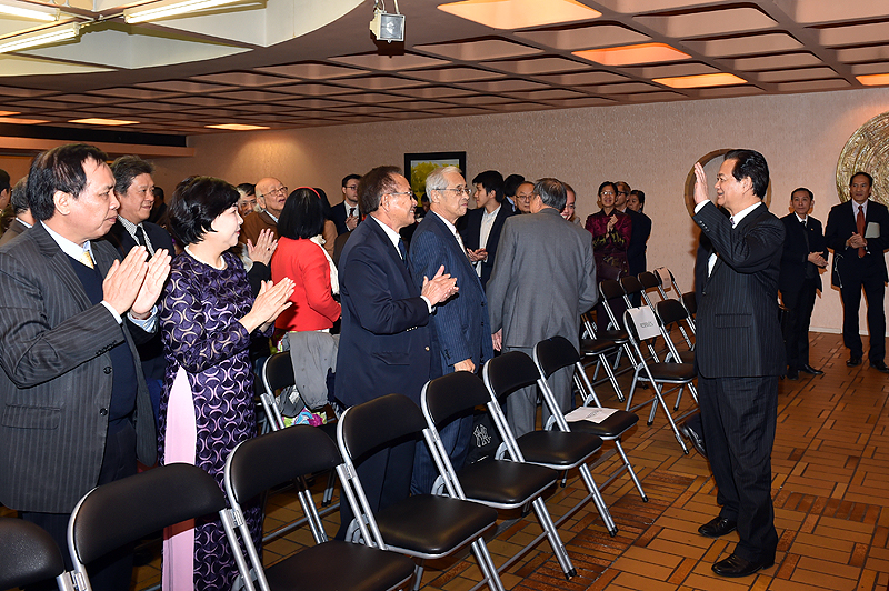 Thủ tướng Nguyễn Tấn Dũng gặp gỡ và nói chuyện thân mật với đại diện cộng đồng người Việt tại Pháp. Ảnh VGP/ Nhật Bắc