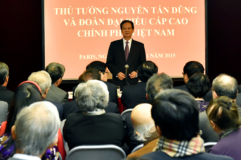 Nhân chuyến đi dự Hội nghị COP 21, chiều tối 29/11 (giờ địa phương), tại Thủ đô Paris, Thủ tướng Chính phủ Nguyễn Tấn Dũng đã gặp gỡ và nói chuyện thân mật với đại diện cộng đồng người Việt và các cán bộ, nhân viên Đại sứ quán Việt Nam tại Cộng hòa Pháp.