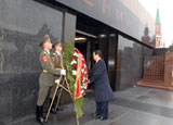Thủ tướng Nguyễn Tấn Dũng đặt vòng hoa trước khi vào viếng Lăng Lê Nin - Ảnh: Website Chính phủ