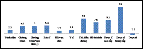 Lực lượng cán bộ y tế tăng khá về số lượng bác sĩ, y sĩ, y tá, điều dưỡng, nữ hộ sinh, dược sĩ cao cấp, trung cấp, dược tá và số bác sĩ bình quân/10.000 dân.