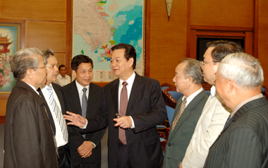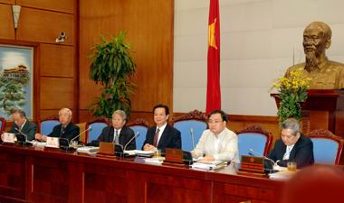 Thủ tướng Nguyễn Tấn Dũng trao đổi với các thành viên Ban Chỉ đạo. Ảnh: Chinhphu.vn