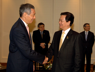 Chiều 23/10/2009, bên lề Hội nghị Cấp cao ASEAN 15, Thủ tướng Nguyễn Tấn Dũng đã gặp Thủ tướng Singapore Lý Hiển Long.