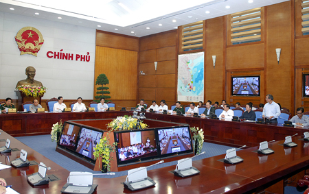 Thủ tướng Nguyễn Tấn Dũng yêu cầu các lãnh đạo các Bộ, ngành, địa phương triển khai tốt Công điện của Thủ tướng Chính phủ, chỉ đạo của Trung ương, dừng tất cả các cuộc họp để ứng phó với bão. Ảnh: VGP/Nhật Bắc