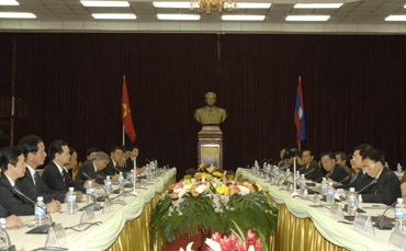 Đoàn đại biểu cấp cao Chính phủ Việt Nam do Thủ tướng Nguyễn Tấn Dũng dẫn đầu trao đổi với Đoàn đại biểu cấp cao Chính phủ Lào do Thủ tướng Bouasone Bouphavanh dẫn đầu - Ảnh Cổng TTĐT Chính phủ