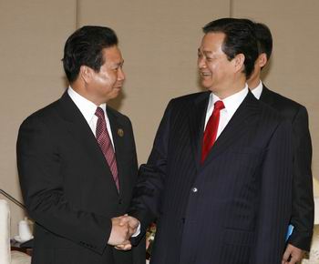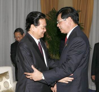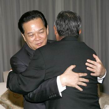 Thủ tướng Nguyễn Tấn Dũng tiếp thân mật Thủ tướng Chính phủ Campuchia Săm đéc Hunsen.