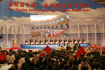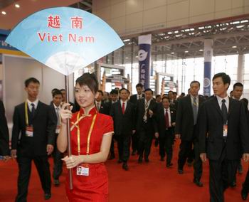 Thủ tướng Nguyễn Tấn Dũng thăm gian hàng của các doanh nghiệp Việt Nam và tham dự lễ Khai mạc Hội chợ Triển lãm ASEAN-Trung Quốc lần thứ 4.