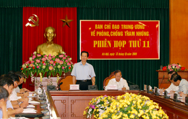 Sáng nay (13/10), Ban Chỉ đạo Trung ương về phòng, chống tham nhũng (Ban Chỉ đạo) đã họp Phiên họp thứ 11 đánh giá kết quả công tác phòng, chống tham nhũng (PCTN) quý III và chỉ đạo nhiệm vụ trọng tâm trong quý IV năm 2009. Thủ tướng Chính phủ Nguyễn Tấn Dũng, Phó thủ tướng Chính phủ Trương Vĩnh Trọng đồng chủ trì phiên họp.
