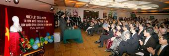 Những người bạn Pháp và đồng bào Việt Nam đang công tác, học tập, làm ăn sinh sống tại Cộng hòa Pháp nồng nhiệt chào đón Thủ tướng Nguyễn Tấn Dũng, Phu nhân và Đoàn cấp cao Việt Nam