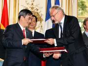 Thủ tướng Nguyễn Tấn Dũng và Thủ tướng Francois Fillon chứng kiến lễ ký kết nhiều văn kiện hợp tác kinh tế giá trị nhiều tỷ USD giữa các doanh nghiệp hai nước.
