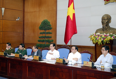 Thủ tướng Nguyễn Tấn Dũng chủ trì cuộc họp trực tuyến chiều 8/11 với các Bộ, ngành và địa phương bàn biện pháp phòng chống bão số 14. Ảnh: VGP/Nhật Bắc