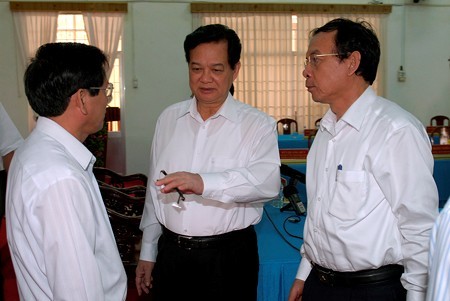 * Trong buổi làm việc với tỉnh Trà Vinh, Thủ tướng Nguyễn Tấn Dũng chỉ đạo tỉnh cần tập trung đầu tư phát triển kết cấu hạ tầng, khai thác tối đa các tiềm năng, lợi thế để phục vụ cho phát triển, nhất là tiềm năng, lợi thế về nông nghiệp, thủy sản; chú ý nhân rộng các mô hình liên kết, phát triển các cánh đồng mẫu lớn, đưa tiến bộ khoa học-công nghệ vào sản xuất nhằm nâng cao năng suất, chất lượng, sức cạnh tranh của các sản phẩn hàng hóa nông nghiệp; chú trọng thu hút vận động doanh nghiệp về đầu tư tại các vùng nông thôn, góp phần chuyển dịch cơ cấu kinh tế, tạo việc làm cho lao động nông thôn; chú trọng đảm bảo an sinh xã hội;