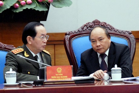 Phó Thủ tướng Nguyễn Xuân Phúc và Đại tướng Trần Đại Quang, Bộ trưởng Bộ Công an dự hội nghị Ban Chỉ đạo 38/CP . Ảnh: VGP