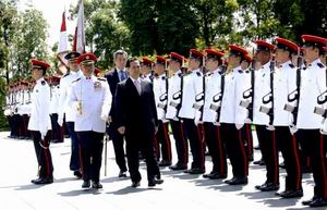 Thủ tướng Nguyễn Tấn Dũng và Thủ tướng Lý Hiển Long duyệt đội danh dự - Ảnh: Website Chính phủ