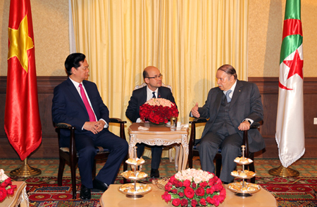 Tổng thống Abdelaziz Bouteflika nồng nhiệt chào mừng Thủ tướng Nguyễn Tấn Dũng cùng Đoàn cấp cao Chính phủ Việt Nam đến thăm Algeria; khẳng định quan hệ giữa hai nước là mối quan hệ hữu nghị truyền thống hết sức tốt đẹp mà cả hai bên cần tiếp tục gìn giữ và phát triển.