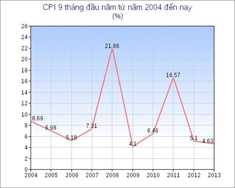 (Chinhphu.vn) - Nhìn tổng quát, CPI 9 tháng năm nay thuộc loại thấp so với tốc độ tăng tương ứng của cùng kỳ trong 10 năm qua (chỉ cao hơn của 9 tháng năm 2009).