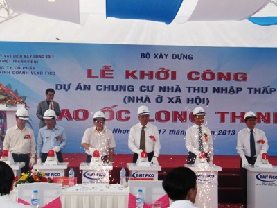 (Chinhphu.vn) - Ngày 17/6/2013, Công ty cổ Phần Đầu tư và Kinh doanh Vật liệu xây dựng Fico (TCty VLXD số 1, Bộ Xây dựng) đã khởi công xây dựng dự án nhà ở xã hội Cao ốc Long Thịnh quy mô 416 căn dành cho đối tượng là người thu nhập thấp.