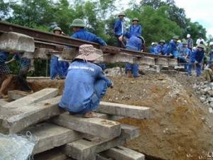 |  | | Các công nhân đang tập trung khắc phục sự cố trên đường tàu Bắc-Nam | Đây là những hạng mục công trình bị hư hại do ảnh hưởng của cơn bão số 11 (Mirinae) tràn vào các tỉnh ven biển miền Trung từ ngày 2/11 đến 4/11/2009 vừa qua, gây thiệt hại nặng nề về người và tài sản. Có tới 25 điểm đường sắt đã bị hư hại nặng trên đoạn đường sắt ở khu vực miền Trung, trải dài trên 70km với khối lượng đất đá sạt lở khoảng 20.000m 3 . Công tác sửa chữa đã phải cần đến 11.000m 3 đá hộc; 3.000m 3 đá dăm; 5.000 rọ đá; 5.500 thanh tà vẹt gỗ. Hệ thống thông tin tín hiệu đường sắt cũng bị hư hỏng nặng do 775 cây đổ vào đường dây, gần 300 cột bêtông bị nghiêng, 12.150m dây cáp treo bị đứt… Đặc biệt, thiết bị tín hiệu đường sắt từ Phong Thạnh, tỉnh Khánh Hòa đến Diêu Trì, tỉnh Bình Định bị hỏng toàn bộ thiết bị khống chế, thiết bị điều khiển, tín hiệu ra, vào ga. Khi bão số 11 đổ bộ, hệ thống cáp và hộp cáp tín hiệu, thiết bị nguồn điện các ga đều ngập sâu trong nước. Trong đó có ga Vân Canh và Tân Vinh ở tỉnh Bình Định. Tại khu vực này, toàn bộ thiết bị tủ điều khiển, cột tín hiệu đường bộ, cáp và các hộp cáp của 10 đường ngang cảnh báo tự động... bị hỏng nặng. Được biết, ngành đường sắt đã phải huy động hơn 1.000 công nhân làm 3 ca liên tục để sửa chữa, khắc phục sự cố. Đến nay đoạn đường sắt từ Bình Định đến Khánh Hòa đã được khắc phục bước đầu. Để đảm bảo quá trình chạy tàu an toàn trong mùa mưa lũ, Thủ tướng Chính phủ yêu cầu Tổng công ty Đường sắt Việt Nam quản lý, thực hiện và chịu hoàn toàn trách nhiệm việc xây dựng, hoàn thành việc khắc phục các hạng mục bị hư hỏng thuộc tuyến đường sắt trên trước mùa mưa lũ năm 2010. Hà Phương |