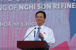 |  | | Thủ tướng Nguyễn Tấn Dũng: Liên hợp lọc dầu Nghi Sơn tạo ra động lực thúc đẩy kinh tế cho Thanh Hóa, Bắc Trung Bộ - Ảnh Cổng TTĐT Chính phủ | Liên hợp lọc hóa dầu Nghi Sơn là dự án lọc dầu thứ 2 có công suất lọc dầu thiết kế 200.000 thùng/ngày, tương đương 10 triệu tấn/năm. Dự án sẽ hoàn thành thiết kế tổng thể vào tháng 10/2009, vận hành thương mại vào năm 2013. Tại lễ khởi công, Thủ tướng Nguyễn Tấn Dũng biểu dương nỗ lực của Tập đoàn Dầu khí Việt Nam, các đối tác liên doanh đến từ Nhật Bản, Kuwait, chính quyền và nhân dân tỉnh Thanh Hóa trong việc triển khai Dự án Liên hợp lọc dầu Nghi Sơn. Thủ tướng nhấn mạnh, cùng với Dung Quất, Khu liên hợp lọc hóa dầu Nghi Sơn sẽ đáp ứng 60% nhu cầu xăng dầu trong nước, góp phần đảm bảo an ninh năng lượng quốc gia, tạo động lực quan trọng thúc đẩy kinh tế cho Thanh Hóa, Bắc Trung Bộ nói riêng và cả nước nói chung. Thủ tướng chỉ đạo chủ đầu tư, các nhà thầu thiết kế, thi công triển khai dự án đúng kế hoạch, tiến độ, đảm bảo chất lượng, an toàn và đưa vào vận hành hiệu quả. Tỉnh Thanh Hóa cần thực hiện tốt công tác quy hoạch Khu kinh tế Nghi Sơn, các ngành kinh tế phụ trợ, công tác giải phóng mặt bằng và tái định cư cho nhân dân. Dự án Liên hợp lọc hóa dầu Nghi Sơn là dự án đặc biệt quan trọng, sử dụng công nghệ hiện đại của thế giới. Theo đánh giá, dự án hội tụ nhiều cái “nhất” trong lĩnh vực đầu tư tại Việt Nam. Đây là dự án lớn nhất từ trước tới nay với tổng vốn đầu tư khoảng 6 tỷ USD. Sau khi đưa vào vận hành, Khu liên hợp có công suất lọc hóa dầu lớn nhất Việt Nam với công suất lọc 200.000 thùng/ngày, tương đương với 10 triệu tấn/năm (gấp 1,5 lần công suất thiết kế của Liên hợp lọc hóa dầu Dung Quất). Dự án có công nghệ hiện đại nhất với cơ cấu sản phẩm gồm xăng A92, A95, A98; dầu diesel, dầu hỏa, nhiên liệu phản lực và Para-xylen- một loại hóa dầu đang có nhu cầu sử dụng rất lớn. Để thực hiện dự án này, Thanh Hóa phải triển khai quyết liệt công tác di dân giải phóng mặt bằng dự kiến chỉ trong 22 tháng (thời gian tính từ tháng 6/2008 đến tháng 4/2010). Theo thiết kế, dự án Liên hợp lọc hóa dầu Nghi Sơn được xây dựng trên diện tích 1.118 ha. Mậu Chính |