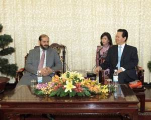 (Website Chính phủ)- Kuwait mong muốn Việt Nam tạo điều kiện thuận lợi để các doanh nghiệp của nước này sang mở rộng hợp tác đầu tư, Bộ trưởng Dầu mỏ Kuwait Mohammad Al-Aulaim đã bày tỏ như vậy tại buổi diện kiến Thủ tướng Chính phủ Nguyễn Tấn Dũng chiều 7/4, tại thành phố Hồ Chí Minh, nhân chuyến thăm và làm việc với lãnh đạo Tập đoàn Dầu khí quốc gia Việt Nam.