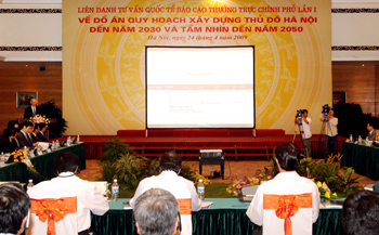 | | Thường trực Chính phủ nghe Liên danh tư vấn quốc tế PPJ báo cáo Đề án quy hoạch chung xây dựng Thủ đô Hà Nội - Ảnh Chinhphu.vn | Đây là báo cáo lần 1 về mục đích và mục tiêu quy hoạch Thủ đô Hà Nội. Các bên liên danh quốc tế PPJ tham gia nghiên cứu và xây dựng quy hoạch Thủ đô đã trình bày Tổng quan hiện trạng Hà Nội về môi trường, kinh tế, dân số, đất đai, hạ tầng cơ sở xã hội, hạ tầng kỹ thuật, không gian quy hoạch, kiến trúc và rà soát các dự án mới tại Hà Nội. Sau 12 đợt khảo sát, tổ chức 6 hội thảo về các vấn đề mấu chốt của công tác quy hoạch; lập bản đồ về điều kiện hiện trạng; tổ chức hội nghị quốc tế với 12 tham luận của chuyên gia quốc tế. PPJ cũng phân tích các bài học về quy hoạch xây dựng của 15 thành phố lớn trên thế giới. Từ đây, theo các chuyên gia PPJ, công tác quy hoạch Thủ đô Hà Nội cần giải quyết nhiều vấn đề đặt ra, trong đó có các vấn đề liên quan đến với 744 dự án chiếm hơn 61 nghìn ha đất, vấn đề giao thông nội thị, ngoại thị, đường vành đai và liên tỉnh, sắp xếp lại không gian chức năng công cộng, đô thị hành chính, vấn đề quản lý đất đai, giải phóng mặt bằng cũng như năng lực quản lý đô thị hiện nay của Hà Nội. Quy hoạch Thủ đô Hà Nội cũng phải đảm bảo kết nối và phát huy chức năng vùng Thủ đô trong phát triển công nghiệp, du lịch, giao thông, hệ thống thoát nước, cấp điện, môi trường, dân cư và nguồn nhân lực.  | | Ảnh Chinhphu.vn | Trên cơ sở này, PPJ trình bày đề án phát triển không gian Hà Nội đến năm 2030 và tầm nhìn đến năm 2050 với mục tiêu phát triển Hà Nội trở thành Thủ đô phát triển bền vững, trong đó có nhiều ý tưởng mới về phát triển một vành đai xanh quy mô khá lớn của Thủ đô, các tính toán mới về diện tích dành cho giao thông, nhà ở. Thủ tướng Nguyễn Tấn Dũng hoan nghênh nỗ lực làm việc của Ban chỉ đạo Nhà nước về Quy hoạch chung xây dựng Thủ đô Hà Nội đến năm 2030 và tầm nhìn đến năm 2050 và các Bộ, ngành liên quan đã phối hợp với liên danh tư vấn quốc tế, trong thời gian ngắn đã xác định mục đích, mục tiêu xây dựng quy hoạch thủ đô và mong muốn các bên liên quan sẽ phối hợp tốt hơn.  | | Ảnh Chinhphu.vn | Thủ tướng đề nghị tiếp thu ý kiến rộng rãi của các tầng lớp nhân dân để tiếp tục hoàn thiện quy hoạch Thủ đô. Trong đó, quy hoạch xây dựng Hà Nội đến năm 2030, tầm nhìn 2050 phải thể hiện Hà Nội là thủ đô của đất nước công nghiệp hóa, phát triển bền vững. Các phương án quy hoạch thủ đô Hà Nội phải bám sát hiện trạng, phù hợp với ý tưởng tương lai. Gắn với quá trình xây dựng phương án quy hoạch Thủ đô, phải rà soát 744 dự án đã có sao cho phù hợp với quy hoạch phát triển trong tương lai. Thời gian từ nay đến khi phê duyệt quy hoạch không còn nhiều nên các Bộ, ngành, địa phương liên quan cần phối hợp chặt chẽ với các nhà tư vấn PPJ để hoàn thành xây dựng quy hoạch một cách ưu việt nhất. Thủ tướng lưu ý cần tiếp tục tiếp thu ý kiến của các tầng lớp nhân dân về quy hoạch phát triển thủ đô Hà Nội và yêu cầu các Bộ, ngành liên quan cần sớm mời thêm tư vấn hàng đầu thế giới, giúp thẩm định đề án quy hoạch do các chuyên gia tư PPJ xây dựng, trước khi trình cấp có thẩm quyền phê duyệt theo đúng lịch trình đề ra. Đông Bắc |