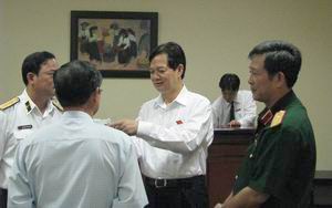 | Thủ tướng Nguyễn Tấn Dũng trao đổi với các đại biểu Quốc hội trong giờ giải lao - Ảnh Cổng TTĐT Chính phủ |