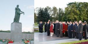 Thủ tướng Nguyễn Tấn Dũng, Phu nhân và Đoàn đại biểu cấp cao Chính phủ Việt Nam đã đến đặt vòng hoa và mặc niệm trước Tượng đài Mẹ - Tổ quốc trong Khu nghĩa trang Pi-xka-rốp, nơi yên nghỉ cuối cùng của hàng vạn người dân St. Petersburg hy sinh trong cuộc chiến tranh vệ quốc vĩ đại.