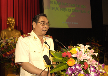 | | | Ảnh: Chinhphu.vn | Nguyên Tổng Bí thư Lê Khả Phiêu, Bộ trưởng Bộ Công an Lê Hồng Anh, lãnh đạo một số Bộ, Ban, ngành Trung ương cùng tham dự. Thay mặt Lãnh đạo Đảng và Nhà nước, Thủ tướng nhiệt liệt biểu dương những thành tích của lực lượng Công an nhân dân (CAND) trong công tác giáo dục đào tạo và thực hiện Di chúc của Chủ tịch Hồ Chí Minh trong suốt 40 năm qua, đã góp phần rất quan trọng vào chiến công chung của lực lượng CAND Việt Nam. Chủ tịch Hồ Chí Minh, người thầy vĩ đại của cách mạng Việt Nam, người cha thân yêu của lực lượng vũ trang nhân dân, sinh thời Người đã dành sự quan tâm đặc biệt, chăm lo giáo dục, rèn luyện lực lượng CAND Việt Nam. Công tác xây dựng lực lượng và công tác giáo dục đào tạo trong lực lượng CAND luôn gắn liền với phong trào học tập và thực hiện 6 Điều Bác Hồ dạy CAND và thực hiện Di chúc của Người. Thủ tướng nhấn mạnh: Đảng ủy Công an Trung ương và lãnh đạo Bộ Công an cần tiếp tục quán triệt sâu sắc đến toàn thể cán bộ, chiến sĩ CAND về tấm gương đạo đức của Chủ tịch Hồ Chí Minh, những giá trị tư tưởng, tinh hoa đạo đức văn hóa và tâm hồn cao đẹp kết tinh trong nội dung Di chúc của Người để ra sức học tập và noi theo; cần tổ chức thực hiện có hiệu quả Cuộc vận động Học tập và làm theo tấm gương đạo đức của Chủ tịch Hồ Chí Minh. | | | Bộ trưởng Công an Lê Hồng Anh - Ảnh: Chinhphu.vn | Cần tiến hành tổng kết một cách toàn diện, sâu sắc công tác đào tạo của lực lượng CAND trong 40 năm qua, qua đó chỉ ra những thành quả đã đạt được để phát huy, phát hiện những yếu kém để khắc phục, xác định rõ mục tiêu, phương hướng, biện pháp nhằm đổi mới toàn diện công tác giáo dục đào tạo, nâng cao chất lượng đào tạo “vừa hồng, vừa chuyên” trong lực lượng CAND. Tập trung các nguồn lực để bồi dưỡng và nâng cao trình độ đội ngũ cán bộ giảng dạy, cán bộ quản lý trong các trường CAND, đặc biệt là trình độ ngoại ngữ, tin học, nghiệp vụ sư phạm và nghiệp vụ quản lý; thực hiện tốt Cuộc vận động của ngành Giáo dục đào tạo: Mỗi thầy giáo, cô giáo là tấm gương đạo đức tự học và sáng tạo, xây dựng được môi trường giáo dục lành mạnh trong các nhà trường CAND với chủ đề: Nhà trường kỷ cương, nhà giáo mẫu mực, học viên tích cực. Phải thực hiện thật tốt công tác quản lý học viên, phát huy ý thức tự rèn luyện, tinh thần say mê học hỏi của học viên, chủ động kiên quyết ngăn chặn mọi hiện tượng tiêu cực trong nhà trường CAND. Mỗi cán bộ chiến sĩ trong lực lượng CAND phải nỗ lực phấn đấu rèn luyện theo 6 Điều Bác Hồ dạy CAND và Di chúc của Người, góp phần xây dựng lực lượng CA trong sạch, vững mạnh, cách mạng, chính quy, từng bước hiện đại, xứng đáng với truyền thống vẻ vang của ngành, xứng đáng với lòng tin yêu của toàn Đảng, toàn dân. *Năm 1964, Hội đồng Chính phủ đã công nhận Trường Công an Trung ương (Học viện An ninh nhân dân ngày nay) là trường đại học của lực lượng CAND. Năm 1969, Bộ Công an đã chiêu sinh khóa đào tạo đại học đầu tiên của ngành Công an. Đây là mốc lịch sử quan trọng, đánh dấu thời kỳ phát triển mới của công tác giáo dục đào tạo trong lực lượng CAND Việt Nam. Công tác đào tạo đại học trong lực lượng CAND đã có bước phát triển vượt bậc, từ chỗ chỉ có 1 cơ sở đào tạo đại học với 1 ngành đào tạo, đến nay đã có nhiều cơ sở đào tạo với nhiều chuyên ngành, đào tạo hàng vạn cán bộ Công an trình độ đại học, trong đó có rất nhiều đồng chí đã phấn đấu học tập đạt trình độ trên đại học. Văn Hiến – Nhật Bắc |