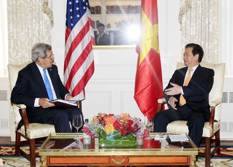 Ngoại trưởng Mỹ John Kerry tiếp Thủ tướng Nguyễn Tấn Dũng. Ảnh: TTXVN