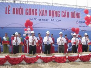 | | | Thủ tướng Nguyễn Tấn Dũng cắt băng khánh thành cầu Thuận Phước- Ảnh: Chinhphu.vn | Cầu Thuận Phước (bắc qua sông Hàn) là cây cầu dây võng dài nhất Việt Nam (2.119m), được thiết kế hiện đại, thi công với công nghệ tiên tiến nối liền từ quận Hải Châu, trung tâm thành phố với bán đảo Sơn Trà. Khi đưa vào sử dụng, cầu Thuận Phước sẽ là công trình quan trọng phục vụ phát triển kinh tế-xã hội, an ninh quốc phòng, và nhất là đáp ứng phát triển du lịch, dịch vụ cho khu vực Sơn Trà. | | | Thủ tướng Nguyễn Tấn Dũng tham gia lễ khởi công xây dựng cầu Rồng- Ảnh: Chinhphu.vn | Phát biểu tại buổi lễ, Thủ tướng Nguyễn Tấn Dũng biểu dương những nỗ lực của Đảng bộ, chính quyền và nhân dân thành phố và các đơn vị thi công đã xây dựng những công trình quan trọng, đưa Đà Nẵng phát triển nhanh, mạnh và bền vững về mọi mặt. Thủ tướng khẳng định, việc đầu tư cho kết cấu hạ tầng, đặc biệt là giao thông mà Đà Nẵng đã lựa chọn và thực hiện có hiệu quả trong những năm qua là con đường đúng đắn đưa Đà Nẵng phát triển mạnh mẽ, trở thành thành phố trọng điểm của khu vực, đóng góp xứng đáng vào sự phát triển của đất nước.  | | Sông Hàn về đêm - Ảnh:Chinhphu.vn | Cùng ngày, lễ khởi công công trình cầu Rồng qua sông Hàn cũng được tổ chức tại mố cầu bờ Đông sông Hàn. Đây là công trình quan trọng, sau khi hoàn thành sẽ tạo nên trục chính của thành phố theo hướng Đông –Tây, là con đường nối từ sân bay Đà Nẵng với các tuyến giao thông quan trọng của thành phố, là trục vận tải hành khách, hàng hóa phục vụ thương mại, dịch vụ đáp ứng yêu cầu phát triển của thành phố trong tương lai. Bản thân cây cầu với kiến trúc hình tượng con rồng bay cũng sẽ trở thành một biểu tượng độc đáo, một điểm nhấn du lịch của thành phố Đà Nẵng. Thủ tướng Nguyễn Tấn Dũng cùng các vị lãnh đạo Đảng, Nhà nước đã thực hiện việc động thổ công trình trong niềm vui hân hoan của nhân dân thành phố. Lê Hoa |