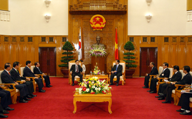 Trong cuộc hội kiến với Tổng thống Đại Hàn Dân Quốc Lee Myung-Bak chiều 21/10, tại Trụ sở Chính phủ, Thủ tướng Nguyễn Tấn Dũng, thay mặt Chính phủ Việt Nam, nhiệt liệt chào mừng chuyến thăm chính thức Việt Nam của Tổng thống Lee Myung-Bak.