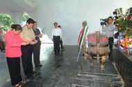 |  | | Thủ tướng Nguyễn Tấn Dũng và Phu nhân tưởng nhớ các anh hùng, liệt sĩ tại Nghĩa trang Liệt sĩ Điện Biên Phủ Ảnh: Cổng TTĐT Chính phủ | Thủ tướng Nguyễn Tấn Dũng, Phu nhân và Đoàn công tác Chính phủ thăm di tích lịch sử chiến thắng Điện Biên Phủ (Khu hầm De Castrie) Ảnh Cổng TTĐT Chính phủ | Tham gia Đoàn công tác Chính phủ có Bộ trưởng, Chủ nhiệm Văn phòng Chính phủ Nguyễn Xuân Phúc, Bộ trưởng Bộ Xây dựng Nguyễn Hồng Quân, Bộ trưởng Bộ Giao thông vận tải Hồ Nghĩa Dũng, Thứ trưởng Bộ Công an Nguyễn Văn Hưởng, Thứ trưởng Bộ Kế hoạch và Đầu tư Cao Viết Sinh, Thứ trưởng Bộ Tài chính Phạm Sỹ Danh, Thứ trưởng Bộ Công Thương Đỗ Hữu Hào, Thứ trưởng Bộ Nông nghiệp và Phát triển nông thôn Hứa Đức Nhị, Trợ lý Thủ tướng Nguyễn Văn Tùng. Thủ tướng Nguyễn Tấn Dũng cùng Đoàn công tác Chính phủ đã tới dâng hương, hoa viếng các anh hùng, liệt sỹ góp phần làm nên chiến thắng Điện Biên Phủ “lừng lẫy năm châu, chấn động địa cầu” tại Nghĩa trang liệt sĩ Điện Biên Phủ và thăm Khu di tích lịch sử chiến thắng Điện Biên Phủ (Khu hầm De Castrie).  | | Thủ tướng Nguyễn Tấn Dũng và Đoàn Công tác Chính phủ làm việc với lãnh đạo chủ chốt tỉnh Điện Biên Ảnh: Cổng TTĐT Chính phủ | Trong cuộc làm việc với cán bộ chủ chốt của tỉnh, Thủ tướng Nguyễn Tấn Dũng và các thành viên Đoàn công tác Chính phủ đã ghi nhận và biểu dương một số kết quả Điện Biên đạt được từ đầu năm đến nay. Mặc dù là tỉnh miền núi đặc biệt khó khăn, thiếu thốn nhiều bề, tỷ lệ hộ đói nghèo trên 30%, có huyện, xã tỷ lệ hộ nghèo trên 50%, riêng huyện Mường Nhé có đến 70% hộ nghèo; GDP bình quân đầu người thấp (5,5 triệu – 5,7 triệu đồng/năm); song Đảng bộ, chính quyền, đồng bào 21 dân tộc trong tỉnh đã có nhiều cố gắng, nỗ lực đạt được những kết quả khá toàn diện trên các mặt kinh tế - xã hội, giáo dục, quốc phòng an ninh; tốc độ tăng trưởng kinh tế (GDP) đạt 9,2%, cơ cấu kinh tế chuyển dịch theo hướng tích cực, tỷ trọng các ngành công nghiệp và dịch vụ tăng dần, đời sống nhân dân từng bước được cải thiện; quốc phòng an ninh được giữ vững, trật tự an toàn xã hội được bảo đảm. Để Điện Biên tạo được bước đột phá về tăng trưởng và chuyển dịch cơ cấu kinh tế, sớm thoát khỏi tình trạng tỉnh nghèo, đặc biệt khó khăn, Thủ tướng gợi ý: Điện Biên cần phải tính toán làm giàu từ những tiềm năng lợi thế của tỉnh như rừng, thủy điện, khoáng sản, du lịch, kinh tế cửa khẩu… Thủ tướng lưu ý phải quy hoạch lại nông nghiệp, trồng trọt, chăn nuôi, rừng phòng hộ, rừng đặc dụng. Tỉnh nên hợp tác, hỗ trợ Tập đoàn cao su để phát triển trồng 20.000 ha cây cao su, loại cây công nghiệp có giá trị kinh tế cao, góp phần xóa đói, giảm nghèo. Điện Biên cần tiếp tục phát triển công nghiệp khai thác khoáng sản, thủy điện, xi măng. Xây dựng du lịch Điện Biên thành Trung tâm du lịch có tầm cỡ của vùng Tây Bắc và là một trọng điểm du lịch trong hệ thống du lịch quốc gia. Thủ tướng giao Bộ Xây dựng giúp tỉnh xây dựng thành phố Điện Biên theo hướng là thành phố du lịch. Thủ tướng cũng lưu ý, Điện Biên cần đẩy nhanh tiến độ di dân tái định cư thủy điện Sơn La, tiến độ như hiện nay còn còn chậm. Thủ tướng cũng cho ý kiến giải quyết một số kiến nghị của tỉnh như nâng cấp quy mô của các trường dân tộc nội trú; nâng cấp tuyến đường vành đai biên giới từ Điện Biên đến của khẩu Huổi Puốc; đầu tư nâng cấp Cửa khẩu quốc tế Tây Trang; tăng thêm ngân sách hỗ trợ cho việc chuẩn bị tổ chức kỷ niệm 55 chiến thắng lịch sử Điện Biên Phủ… Việt Đông |