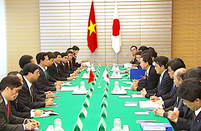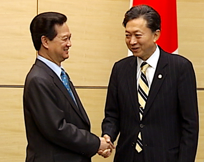 Trong thời gian tham dự Hội nghị Cấp cao Mekong-Nhật Bản tại Tokyo, chiều 7/11, Thủ tướng Chính phủ Nguyễn Tấn Dũng đã có cuộc hội đàm với Thủ tướng Nhật Bản Yukio Hatoyama tại Phủ Thủ tướng Nhật Bản.