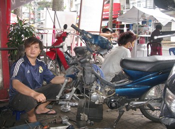 Anh Hoàng Trọng Ẩn, ở phường 12, quận 5, TPHCM, đã được vay vốn và hỗ trợ dạy nghề sửa xe máy. Ảnh: VGP/Thanh Thủy
