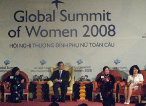 Thủ tướng cũng đánh giá cao vị trí, vai trò của Hội nghị Thượng đỉnh Phụ nữ toàn cầu trong việc đưa ra những khuyến nghị bổ ích cho các Chính phủ, các nhà lãnh đạo quốc gia, lãnh đạo các tổ chức quốc tế nhằm bảo vệ quyền lợi chính đáng, bảo đảm sự bình đẳng giới, cũng như cải thiện điều kiện sống và làm việc của phụ nữ và nâng cao hơn nữa vai trò của phụ nữ trong mọi mặt của đời sống xã hội.